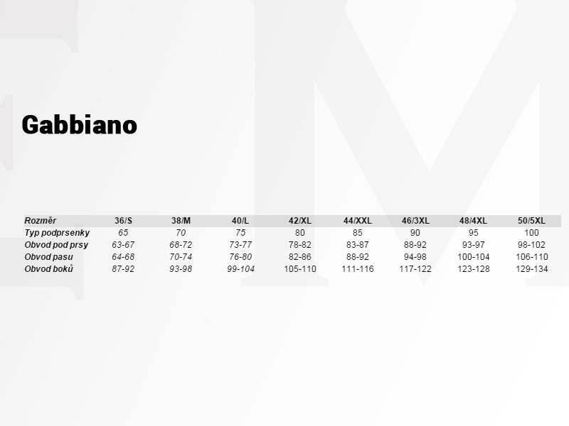 | Veľkosť | Obvod bedier | Obvod pod prsiami | Obvod pŕs |