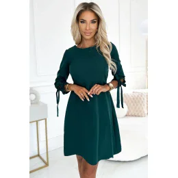 195-11 ALICE Trapézové šaty s mašľami - BOTTLE GREEN