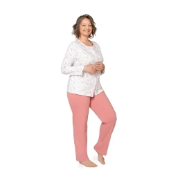 Dámske pyžamo Maria 202 BIG je dokonalou kombináciou pohodlia a elegancie na každú sezónu. Je vyrobené z kvalitnej 100 % bavlny, je mäkké, priedušné a šetrné k pokožke. Vzorované tričko s dlhými rukávmi a okrúhlym výstrihom poskytuje štýlový vzhľad, zatiaľ čo zapínanie na celé gombíky uľahčuje jeho obliekanie. Nohavice s jednou dĺžkou a pohodlným elastickým pásom zaručujú voľnosť pohybu a perfektné prispôsobenie. Je ideálnou voľbou pre ženy, ktoré si cenia pohodlie a klasický štýl!