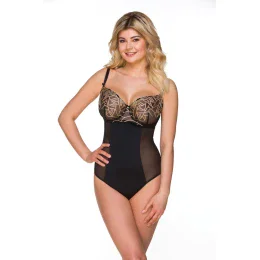 Košíčky sú ozdobené materiálom s originálnym kontrastným vzorom a sú vhodné pre väčšie poprsie. Predný diel body je vyrobený z hladkého čierneho mikrovlákna. Boky tvorí transparentné sieťovina. Ramienka je možné nastaviť, ale nemožno ich odopnúť. Šírka a typ zapínania sú prispôsobené veľkosti a rozmeru podprsenky.