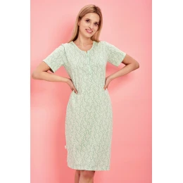 Dámske tričko s krátkym rukávom ušité z kvalitnej vzorovanej bavlny.Okrúhly výstrih, zapínanie na patentky, dĺžka ku kolenám.