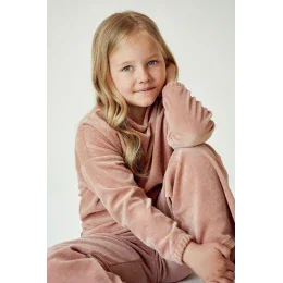 Dievčenská velúrová súprava s dlhými rukávmi a dlhými nohavicami s rovnými nohavicami.