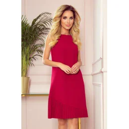 KARINE - Červené dámske trapézové šaty s asymetrickým plisovaním 308-2