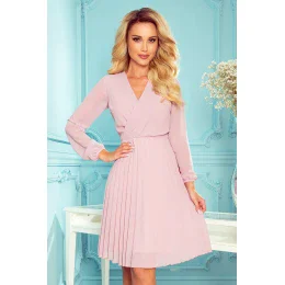 Isabella - plisované šifónové šaty s výstrihom a dlhými rukávmi. farba: púdrovo ružová. značka numoco. poľská výroba.