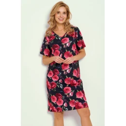Nočná košeľa s krátkymi rukávmi zo vzorovanej bavlny, s výstrihom, dĺžka po kolená.