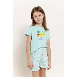 Dievčenské pyžamo Taro Sweety je ideálnou voľbou na teplé noci, je vyrobené zo 100 % kvalitnej mäkkej bavlny pre maximálne pohodlie a priedušnosť. Tričko s krátkym rukávom zdobí očarujúca farebná potlač, ktorá sa bude páčiť každému dievčatku. Súčasťou súpravy sú krátke vzorované šortky, ktoré zaručujú voľnosť pohybu a pohodlie pri nosení.