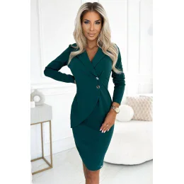 340-6 Šaty s výstrihom, gombíkmi a golierom - BOTTLE GREEN
