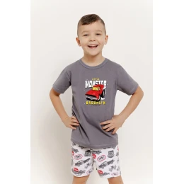 Chlapčenské pyžamo Mateo je ideálnou voľbou na teplé letné noci. Je vyrobené zo 100 % kvalitnej, mäkkej bavlny a poskytuje maximálne pohodlie a priedušnosť. Tričko s krátkym rukávom má farebnú potlač, ktorú si zamiluje každý chlapec. Súčasťou súpravy sú krátke vzorované šortky, ktoré zaručujú voľnosť pohybu a pohodlné nosenie. Celá súprava je zabalená v plastovom vrecku na jednoduché skladovanie a prepravu
