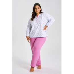 Dámske dlhé pyžamo YOLANDA (model 3462 ) je jedinečnou kombináciou pohodlia, funkčnosti a ženskej estetiky - vytvorené pre ženy vo veľkostiach 2XL-4XL, ktoré oceňujú prírodné materiály a elegantný štýl v domácnosti.
