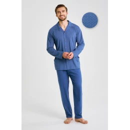 Pánske pyžamo 3485 je elegantnou ponukou pre mužov, ktorí ocenia klasický štýl a pohodlie. Košeľa s dlhým rukávom a zapínaním na gombíky je zakončená tradičným golierom a má praktické vrecká na úrovni bokov. Súpravu dopĺňajú pevné dlhé nohavice s rovnými nohavicami, ktoré zaručujú pohodlie a voľnosť pohybu. Celá súprava je vyrobená z kvalitnej 100 % bavlny, ktorá je ideálna pre náročnú pokožku. Pyžamo je zabalené v elegantnej škatuli - skvelé ako darček.