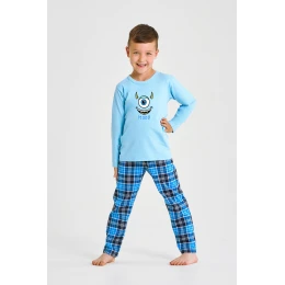 Chlapčenská pyžamová súprava 3500 Joel je pohodlná súprava vyrobená výhradne z prírodnej, priedušnej bavlny. Tričko s dlhými rukávmi má na prednej strane farebnú, hravú potlač, ktorá dodáva celej súprave veselý charakter a bude sa páčiť aj tým najmenším. Dlhé nohavice v klasickom károvanom vzore majú pohodlný elastický pás, ktorý zaručuje dokonalé prispôsobenie a voľnosť pohybu. Vďaka mäkkému, k pokožke šetrnému materiálu je toto pyžamo ideálnou voľbou na spanie a na domáce relaxovanie. Model je k dispozícii vo veľkostiach 122 - 140, ktoré sú ideálne pre mladších chlapcov.
