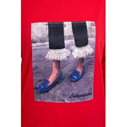 3D grafická blúzka so zirkónmi červená
