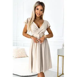 425-7 MATILDE Šaty s výstrihom a krátkymi rukávmi - béžové