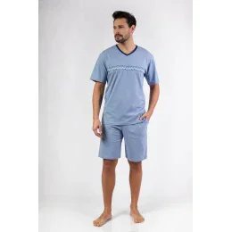 Hľadáte pohodlné a priedušné pyžamo, ktoré vám zaistí pohodlný spánok? Pánske pyžamo 476 W/25 je ideálnou voľbou na teplejšie noci! Je vyrobené zo 100 % kvalitnej bavlny a zaručuje mäkkosť, priedušnosť a pohodlie. Tričko s krátkym rukávom a výstrihom zaručuje voľnosť pohybu a vďaka klasickému strihu je ideálne pre mužov, ktorí ocenia pohodlie a prírodné materiály.