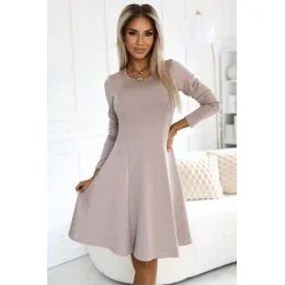 567-1 Pohodlné trapézové šaty s dlhými rukávmi - BEACH