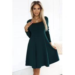 574-1 IVANA pohodlné trapézové šaty s výstrihom a dlhými rukávmi - BOTTLE GREEN