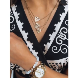Tento trojdielny náhrdelník je neobvyklou kompozíciou, ktorá elegantne spája tri motívy a vytvára tak jedinečné umelecké dielo, ktoré poteší svojou estetikou aj významom. Táto ozdoba bude ideálna pre športový aj elegantný štýl.