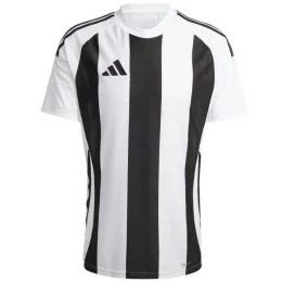 - tri biele pruhy adidas na prednej strane s výrazným vertikálnym pruhovaným vzorom