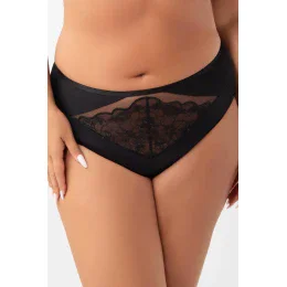 Vyrobené z mikrovlákna s vysokým pásom v kombinácii s elastickým tylom s vyšívanými vsadkami na stabilnom tyle. Zadná časť je zakončená preloženým okrajom z mikrovlákna na vyrovnanie. Bavlnený rozkrok.