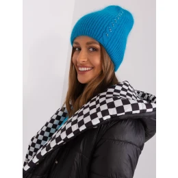 Svetlomodrá dámska čiapka s aplikáciami.