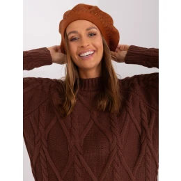 Svetlohnedý pletený baret.
