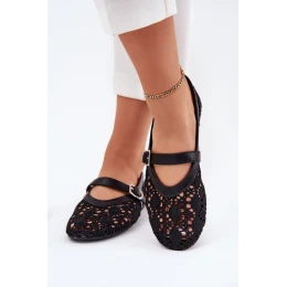 Ażurowe Baleriny Z Paskiem Czarne Orphali