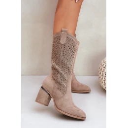 Ażurowe Kozaki Kowbojki Do Połowy Łydki S.Barski HY51-238 Beżowe