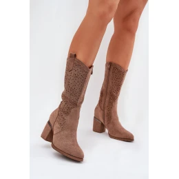 Ażurowe Kozaki Kowbojki Do Połowy Łydki S.Barski HY51-238 Brązowe