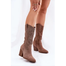 Ażurowe Kozaki Kowbojki Na Słupku S.Barski HY51-606 Brązowe