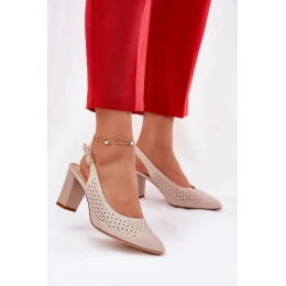 Ażurowe Sandały Ze Szpiczastymi Noskami Na Słupku Sergio Leone SK163 Beżowe