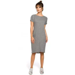 B050 Midi šaty s vreckami vo šve - sivé