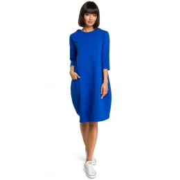 B083 Oversized šaty s predným vreckom - kráľovská modrá