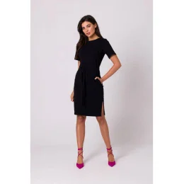 95% bavlna 5% elastan Bavlnené šaty bez rukávov s vreckami a opaskom na zaväzovanie - ponúkajú ležérny elegantný vzhľad. DETAILY PRODUKTU: bavlnené úpletové šaty s opaskom na zaväzovanie pretiahnutým cez hlavu zaoblený výstrih krátke rukávy predné vrecká na zaväzovanie dĺžka nad kolená rozdelenie na bokoch Naša modelka je vysoká 177 cm a nosí veľkosť S