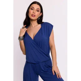 B288 Viskózový zavinovací top s výstrihom do V - modrý