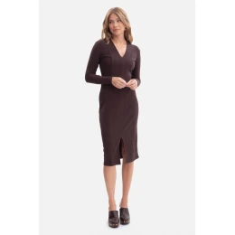 B307 Pletené šaty v tvare ceruzky - tmavá čokoláda
