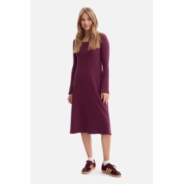B308 Midi šaty z rebrovaného úpletu - slivka
