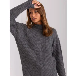 tmavosivý dlhý oversized sveter s polovičným rolákom .