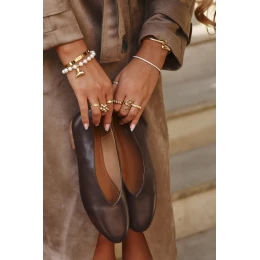 Baleriny Damskie Z Eko Skóry Na Płaskim Obcasie Brązowe Olyssia