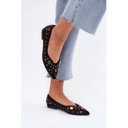 Baleriny Damskie Zdobione Kryształkami Czarne Valena