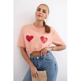 Bavlnená blúzka s marhuľovou potlačou srdca