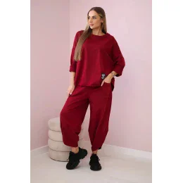 Bavlnená mikina nohavice set Burgundy