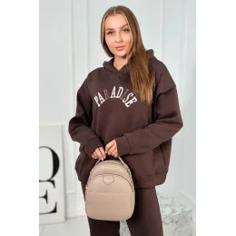 Táto bavlnená súprava vyrobená zo zatepleného materiálu je podstatou pohodlia a štýlu. Skladá sa z dvoch nenahraditeľných prvkov, ktoré vám poskytnú teplo a slobodu pohybu bez toho, aby ste obetovali módny vzhľad. Mikina s vyšitým nápisom "Paradise" je nielen známkou vášho dobrého vkusu, ale aj prejavom uvoľnenosti a bezstarostnosti. Vyšívaný nápis ho robí jedinečným a výnimočným. Vďaka tomu sa odlišuje od ostatných odevov a zároveň si zachováva jednoduchosť, ktorá je tak cenená v každodennom štýle. Nohavice, ktoré sú druhou časťou tohto setu, sú nielen praktické, ale aj módne. Ich pohodlný strih a hrejivý materiál sa budete cítiť pohodlne a pohodlne aj v chladnejších dňoch. Vrecká vám tiež umožnia mať potrebné veci na dosah. Táto sada je kombináciou pohodlia, štýlu a funkčnosti. Bez ohľadu na to, či plánujete stráviť deň odpočinkom doma alebo vyraziť na rýchly nákup, táto sada bude vašim spoľahlivým spoločníkom. Veľkosť je univerzálna a bude vhodná pre ženy veľkosti S, M alebo L.