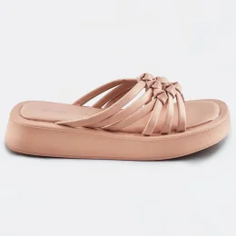 Béžové dámske šľapky s plochou podrážkou (CM-59)