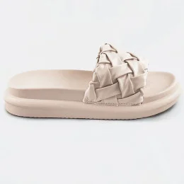 Béžové dámske šľapky so zapleteným opaskom (XA-137)