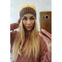 Bibiana fleecová čiapka K264 mocca+yellow