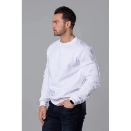 Biela pánska mikina s okrúhlym výstrihom (68B2001-1)