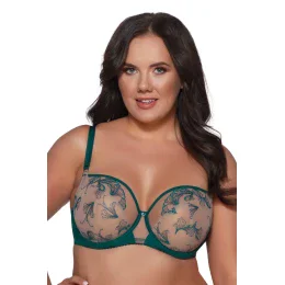 Podprsenka s mäkkými košíčkami, ktoré sú pokryté zložitou výšivkou s trblietavou niťou. Priehľadné tylové okienko, ktoré sa vytvára na prsiach medzi zafírovou kosticou, zmierňuje tlak na model a dodáva mu pôvab