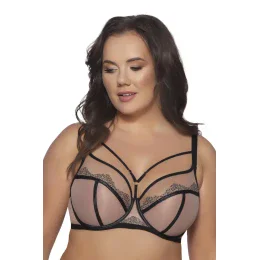 Biustonosz AV 2092 to kwintesencja elegancji połączonej z wyrazistym, zmysłowym designem. Ten miękki model "soft" doskonale okala i podtrzymuje piersi, nadając im pełen, naturalny kształt i pięknie eksponując dekolt. Nietuzinkowe połączenie cielistego tiulu, czarnych lamówek oraz haftu pokrytego modnym zwierzęcym printem tworzy kompozycję, która przyciąga wzrok. Zadziorne paseczki biegnące od mostka do ramiączek dodają modelowi wyjątkowego charakteru, podkreślając kobiecą sylwetkę i dodając pewności siebie. Biustonosz AV 2092 to idealny wybór dla kobiet szukających czegoś wyjątkowego na co dzień i na specjalne okazje.