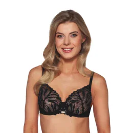 Podprsenka s vystuženými push-up košíčkami a mäkkými vypchávkami je pokrytá zložito tkanou čipkou. Jemne sa prekrývajúce košíčky a ozdobný mostík krásne zvýrazňujú dekolt. Teplá béžová a ušľachtilá čierna položené na pene telovej farby vyzerajú veľmi vkusne, zatiaľ čo jemná ecru poteší svojím šarmom. Aby bola súprava kompletná, nezabudnite si zaobstarať nohavičky s tangami alebo klasické plné nohavičky.