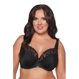 Košíčky sú v spodnej časti vystužené mäkkou penou, ktorá je z vonkajšej strany pokrytá elastickým úpletom. Vrchná časť košíčkov je opäť vyrobená z husto tkanej kvetinovej čipky, ktorá hladko kopíruje tvar pŕs a postupne sa plazí hore popruhom. Ozdobnú hruď a elastický obvod osvetľuje kovový prívesok s logom, ktorý je umiestnený nielen uprostred medzi prsiami, ale aj na chrbte v blízkosti zapínania.
